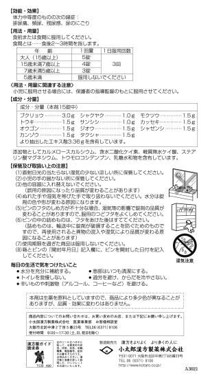 ブクリョウ ・・・ 3.0g シャクヤク ・・・ 1.0g モクツウ ・・・ 1.5g